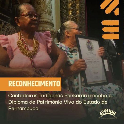 A Articulação dos Povos e Organizações Indígenas do Nordeste, Minas Gerais e Espírito Santo – APOINME, parabeniza as cantadeiras Pankararu, merecidamente reconhecidas como Patrimônio Vivo pelo Estado de Pernambuco.