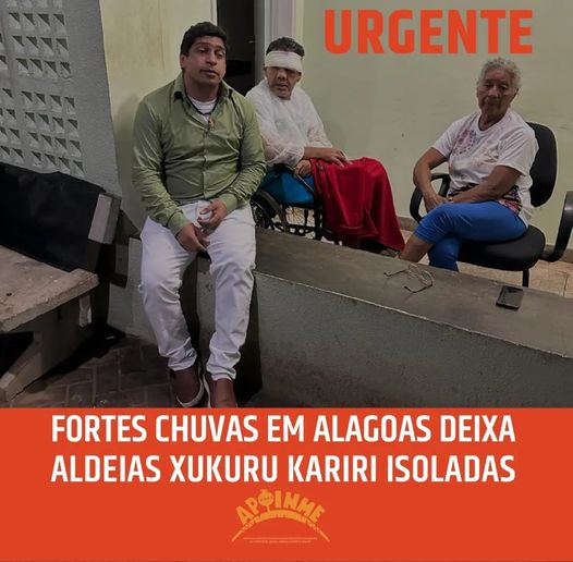 Em razão das fortes chuvas que ocorrem em Alagoas desde a última sexta – feira (07), O povo Xukuru Kariri localizado no município de Palmeira dos Índios-AL, Estar em estado de alerta máximo, principalmente os moradores das aldeias Mata da Cafurna, Coité, Boqueirão e povoados vizinhos, onde muitas famílias ficaram desabrigadas e totalmente isoladas pois as vias de acessos estão totalmente inacessíveis.