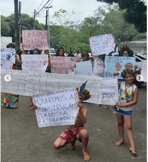 Indígenas Karapotó Terra Nova de Alagoas, Nesta segunda-feira (17) realizam manifestação pacífica na Secretária de Estado da Educação de Alagoas (SEDUC), reivindicando a assinatura da ordem de serviço para a construção de uma escola em seu território.
